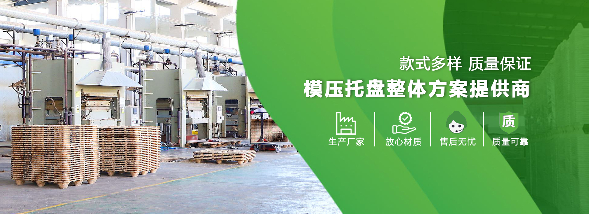 現(xiàn)有廠(chǎng)房占地面積50000平方米,專(zhuān)業(yè)從事模壓技術(shù)應(yīng)用領(lǐng)域的研究,在模壓托盤(pán)研發(fā)設(shè)計(jì),公司擁有完善的管理體系以及高素質(zhì)的管理團(tuán)隊(duì),壓托盤(pán)整體方案的優(yōu)質(zhì)提供商。